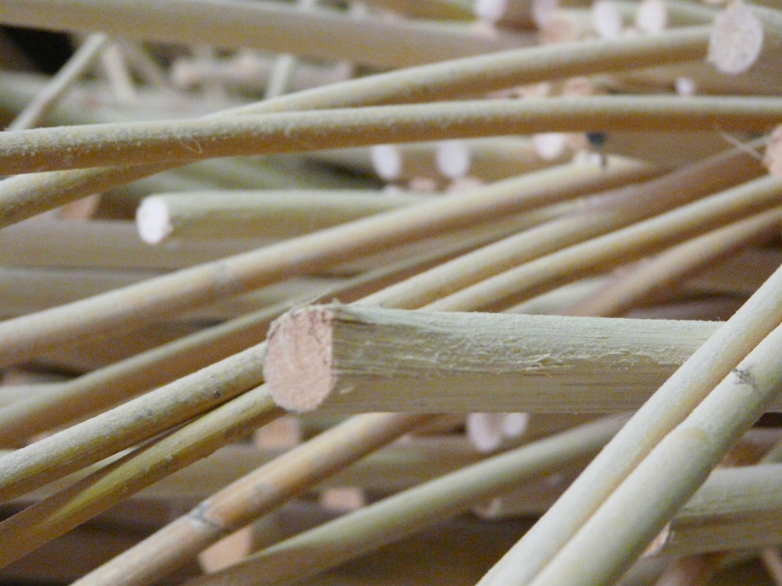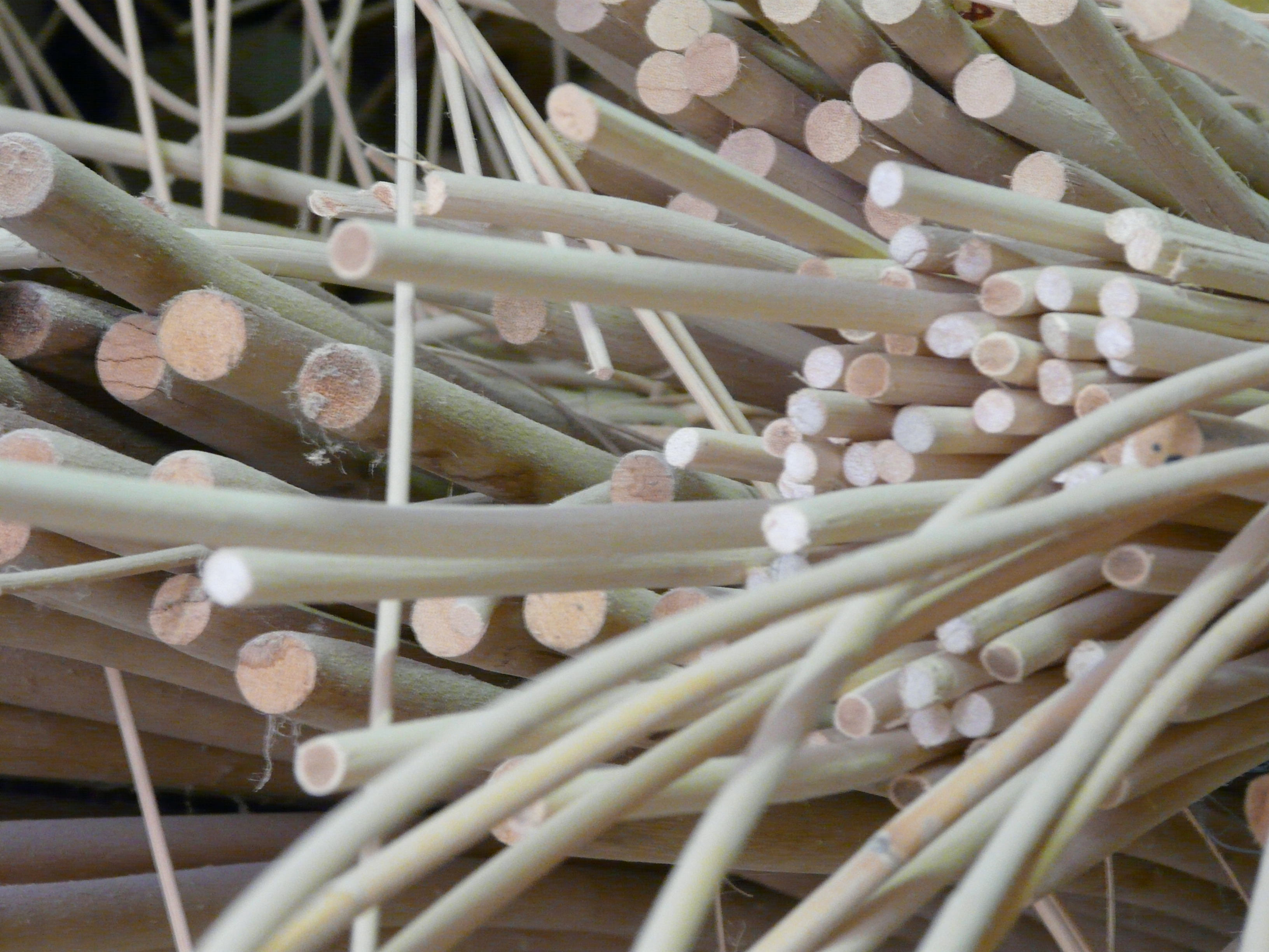 Le bambou, est quant à lui un roseau creux, avec des noeuds réguliers. Il provient de Chine et du Japon. Il peut être cultivé en France dans les régions chaudes. Ses propriétés mécaniques lui permettent une grande résistance à l'écrasement mais étant donné qu'il est creux et non cintrable, il peu être utilisé dans l'ameublement. Son écorce est très dure, il est donc très difficile de la teinter durablement.