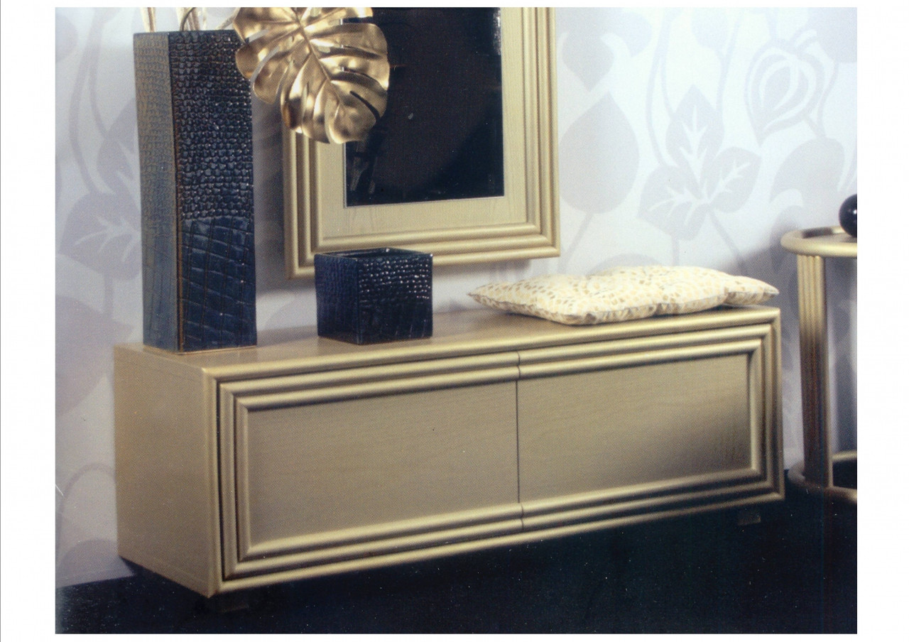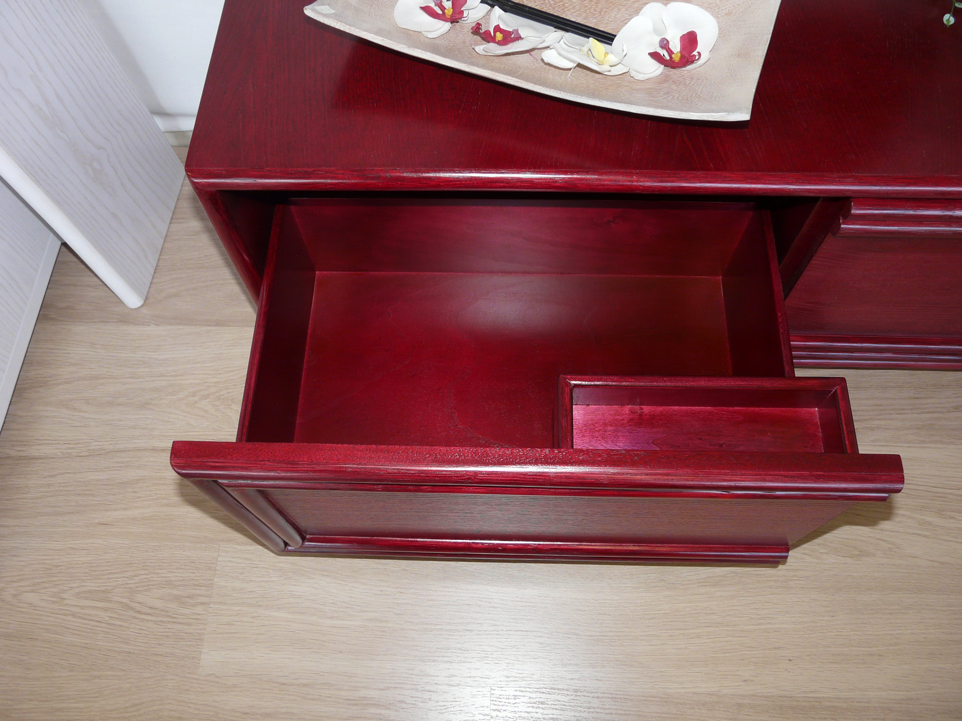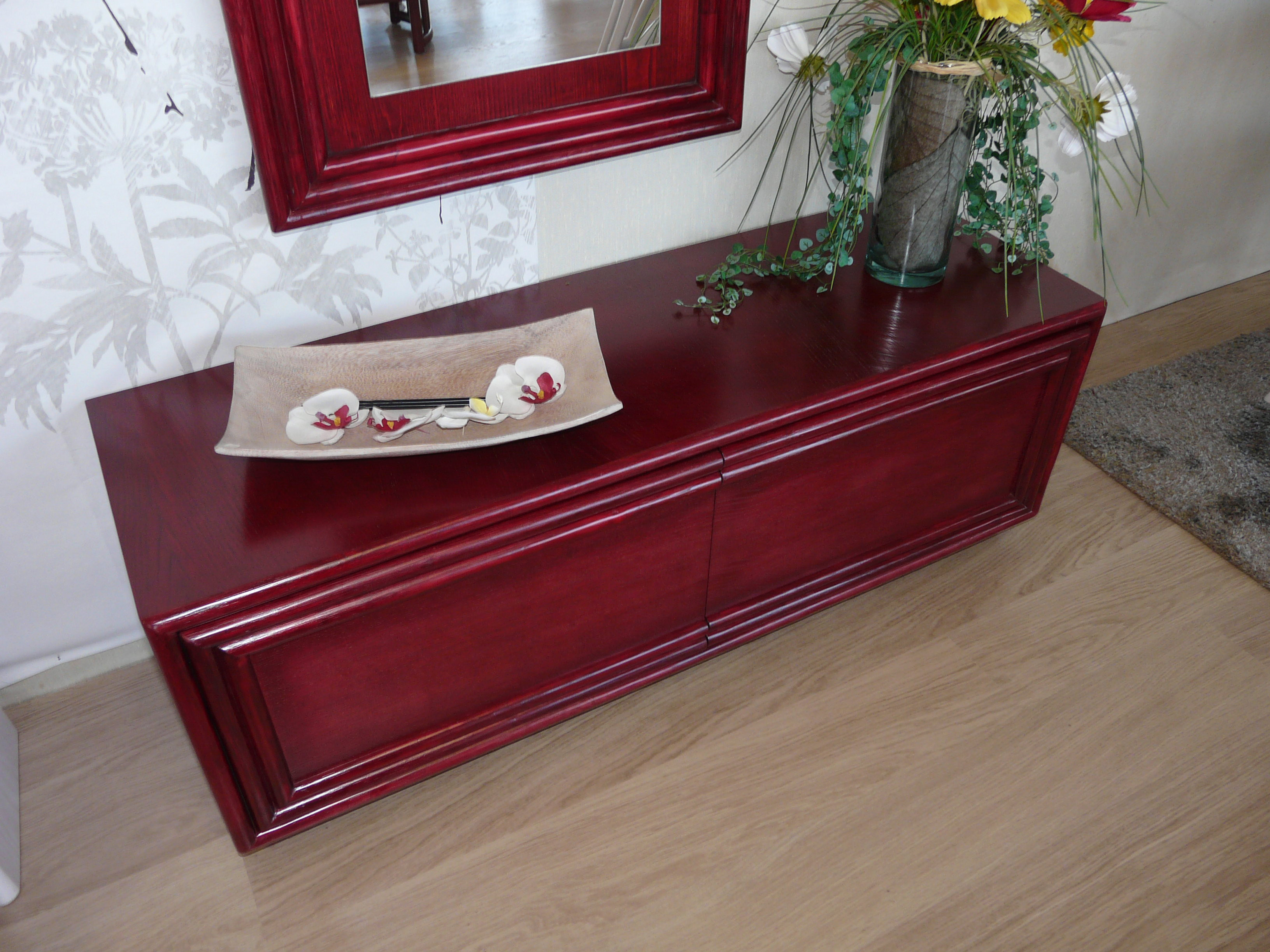 Meuble pouvant s'intégrer dans toutes les pièces de la maison. Comprend 2 tiroirs "touche-lâche" sur coulisses métalliques.